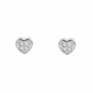 Baby-Girl Earrings 18K White Gold Heart Shiny Zircons
