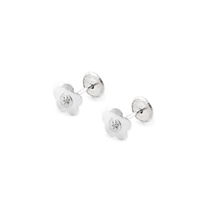 Baby-Girl Earrings 18K White Gold Daisy Flower Shiny Zirconia