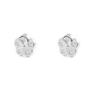 Baby/Girl Earrings 9 Carat White Gold (375/1000) Zircon Flower