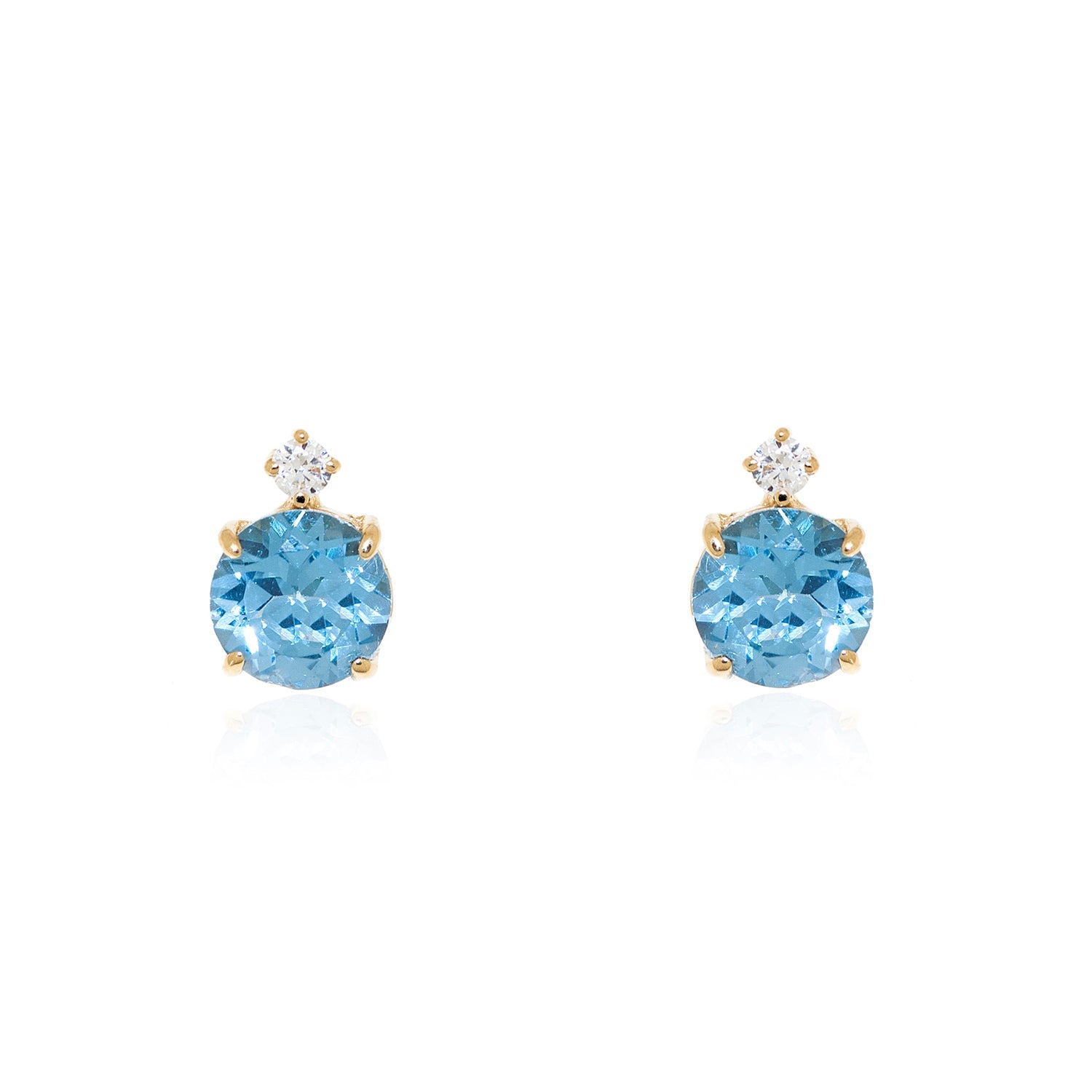 Women-Girls 9K Yellow Gold Shiny Aquamarine Earrings