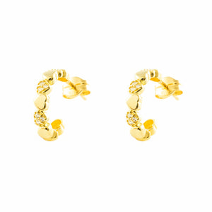 Women's-Girl's Earrings 9K Yellow Gold Shiny Zirconia Hearts
