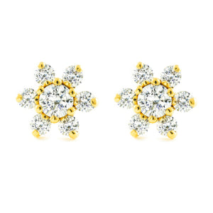 Women's-Girl's Earrings 9K Yellow Gold Shiny Zirconia Flower