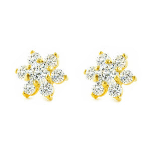 Women's-Girl's Earrings 9K Yellow Gold Shiny Zirconia Flower
