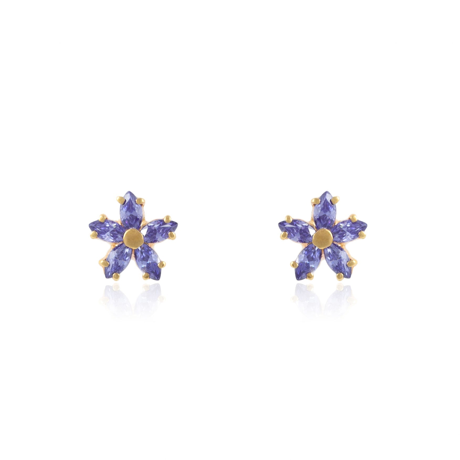 Women's-Girl's Earrings 9K Yellow Gold Shiny Amethyst Daisy Flower