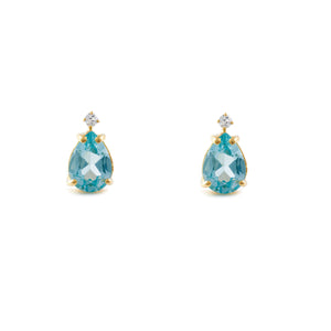 9K Yellow Gold Shiny Aquamarine Teardrop Earrings for Women-Girls