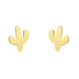 Women's-Girl's Earrings 9K Yellow Gold Smooth Shiny Cactus