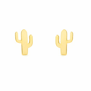 Women's-Girl's Earrings 9K Yellow Gold Smooth Shiny Cactus