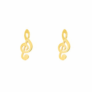 Women's-Girl's Earrings 9K Yellow Gold Smooth Shiny Musical Note