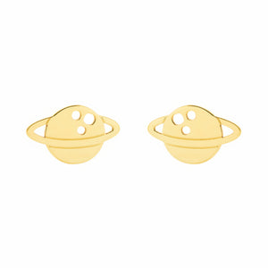 Women's-Girl's Earrings 9K Yellow Gold Smooth Shiny Planet