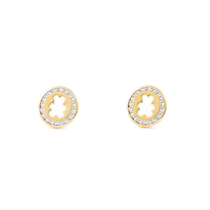 Women's-Girl's Earrings 9K Yellow Gold Mother of Pearl Shiny Zirconia Bear