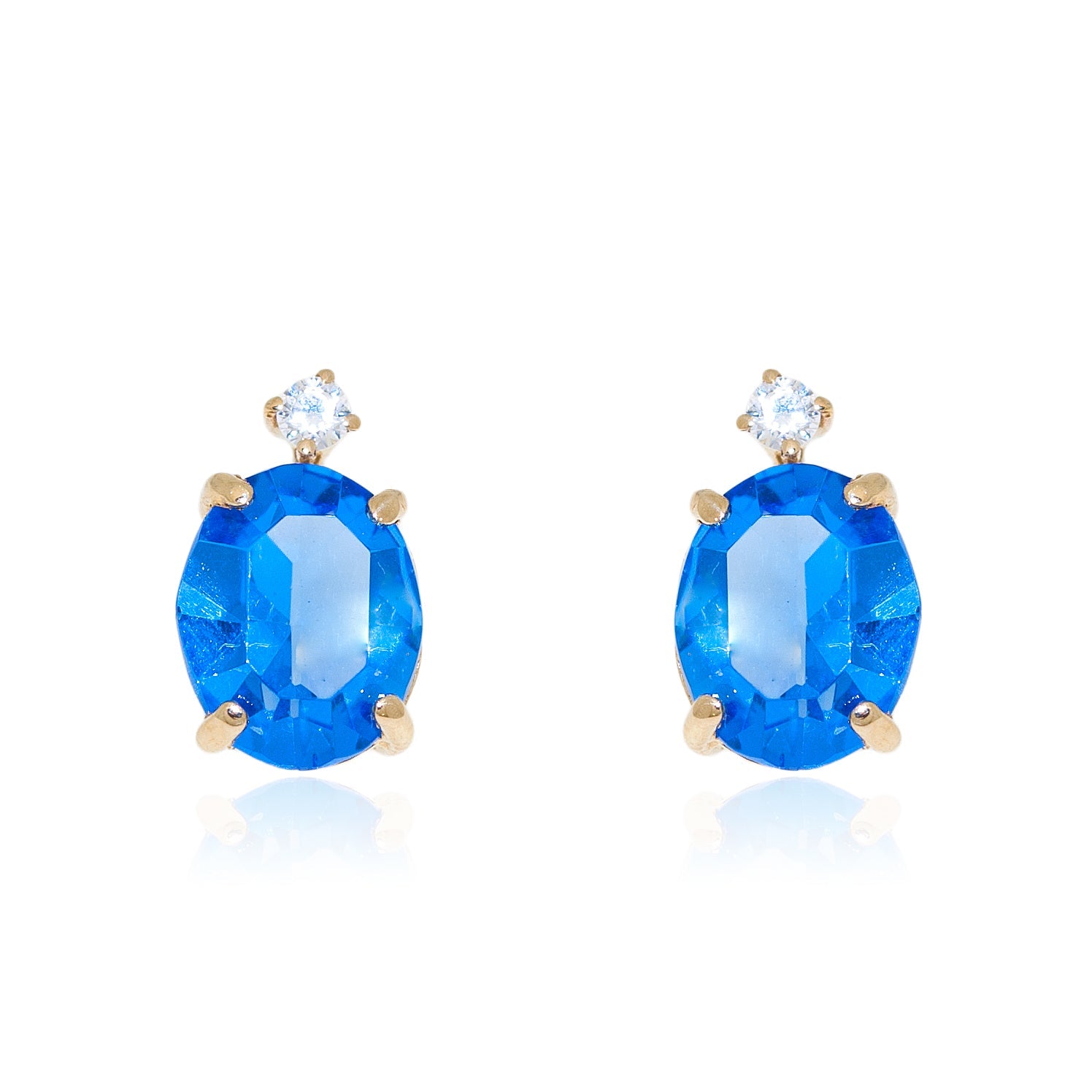 Women's-Girl's Earrings 9K Yellow Gold Oval Shiny Sapphire