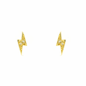 Women's-Girl's Earrings 9K Yellow Gold Textured Zircon Lightning Bolt