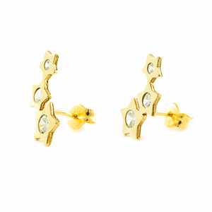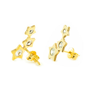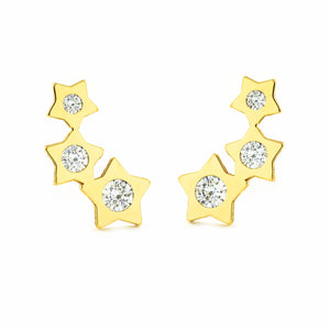 Women's-Girl's Earrings 9K Yellow Gold Climbing Shiny Zirconia Stars