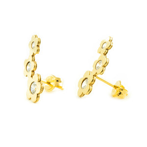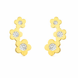 Women's-Girl's Earrings 9K Yellow Gold Climbing Flowers Shiny Zircons