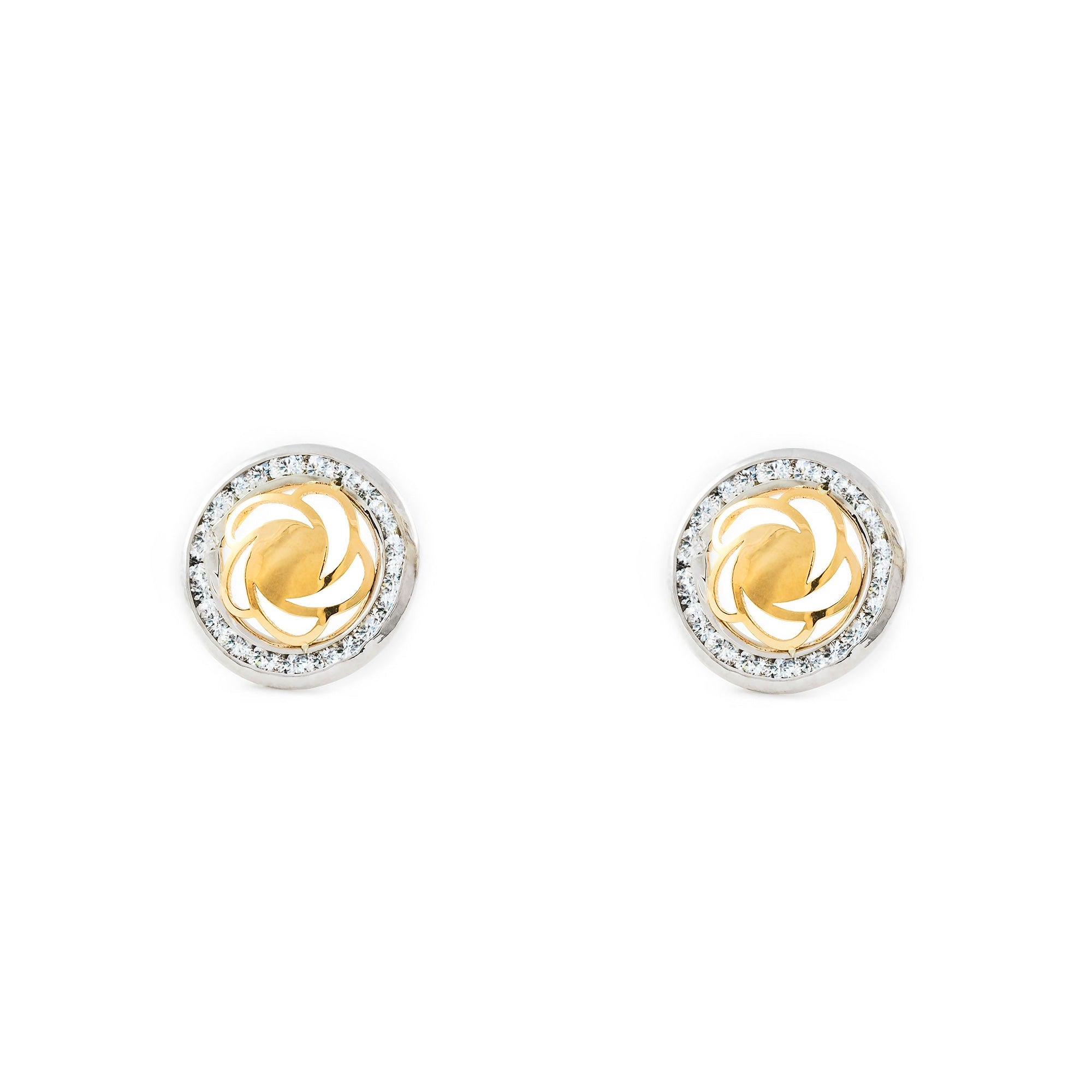 Women's-Girl's Earrings 9K Bicolor Gold Round Shiny Zircons