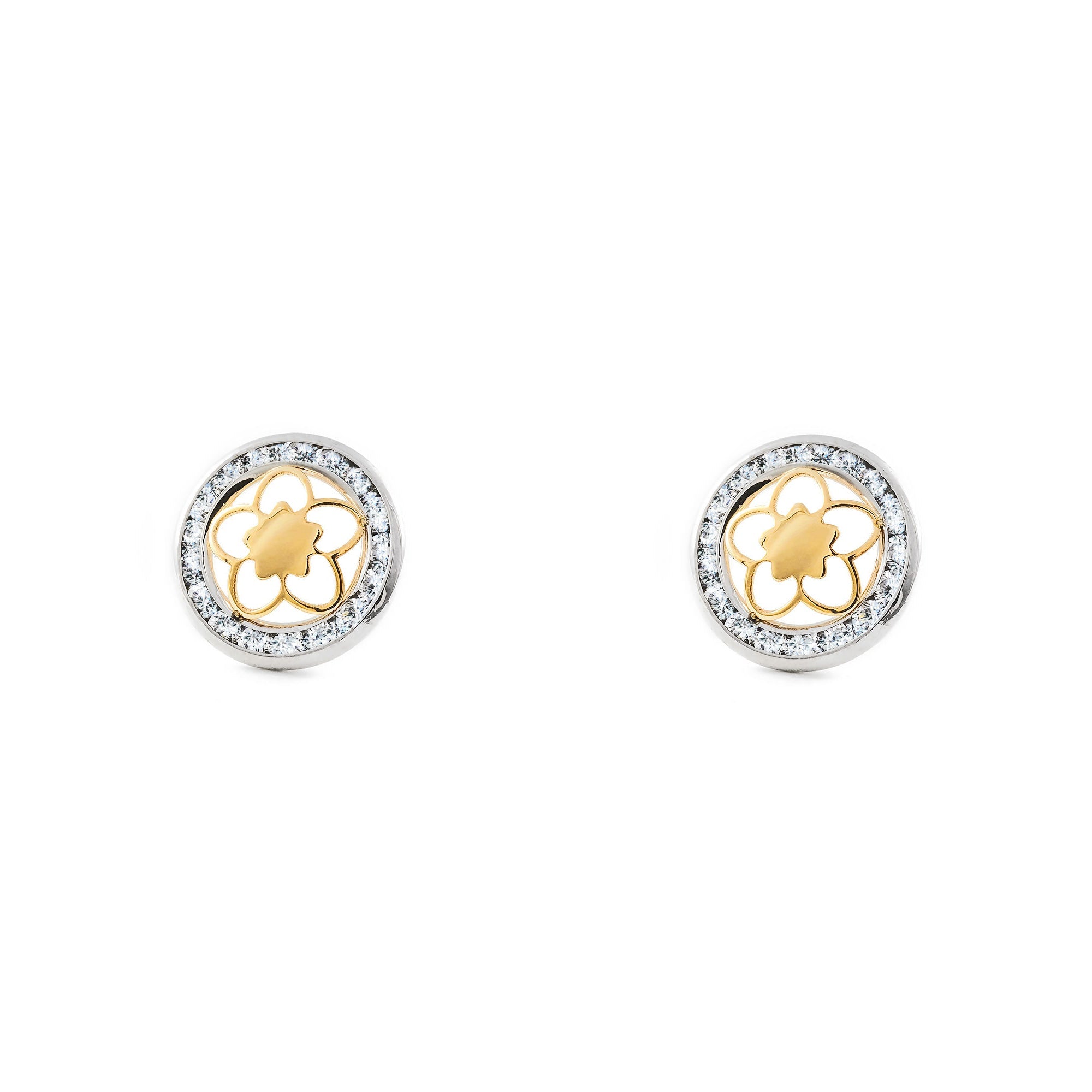 Home Women's-Girl's Earrings 9K Bicolor Gold Round Shiny Zircons