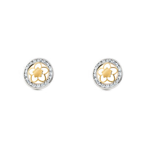 Pendientes Bicolor flor margarita calada y cerco en circon (9kts)