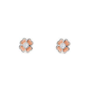 Women's/Girl's Earrings 9 Carat Bicolor Gold (375/1000) Trebol Matte and Shiny Zirconia