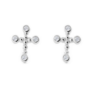 Women's/Girl's Earrings 9 Carat White Gold (375/1000) Zircon Cross