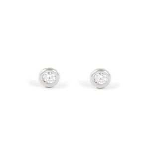 Women's-Girl's Sterling Silver Round Chatón Shiny Zirconia Earrings