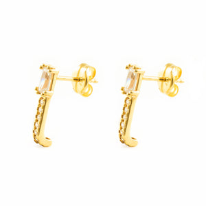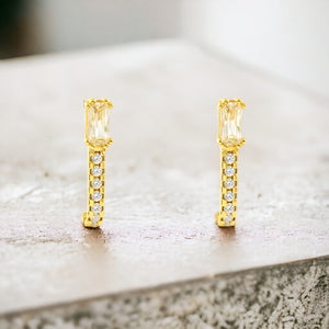 Women's 9K Yellow Gold Baguette Zirconia Shine Earrings