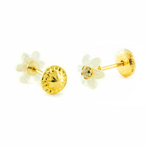 Girl's Earrings 18K Yellow Gold Mother of Pearl Glitter Flower