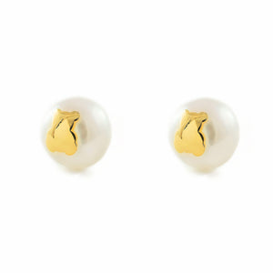Girl's Earrings 18K Yellow Gold Pearl Button 7 mm Shiny Bear