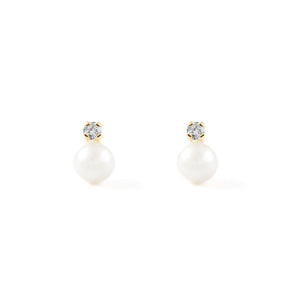 Girl's Earrings 18 Karat Gold (750/1000) Round Pearl Zirconia 5 mm