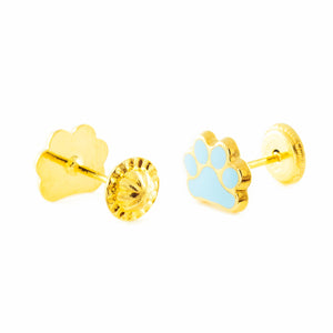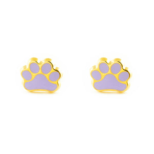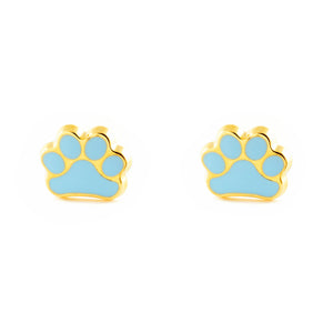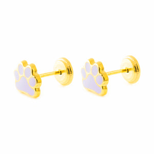 18K Yellow Gold Girl's Earrings Shiny Enamel Paw