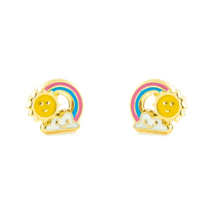 Girl's Earrings 9K Yellow Gold Rainbow Multicolor Shiny Enamel