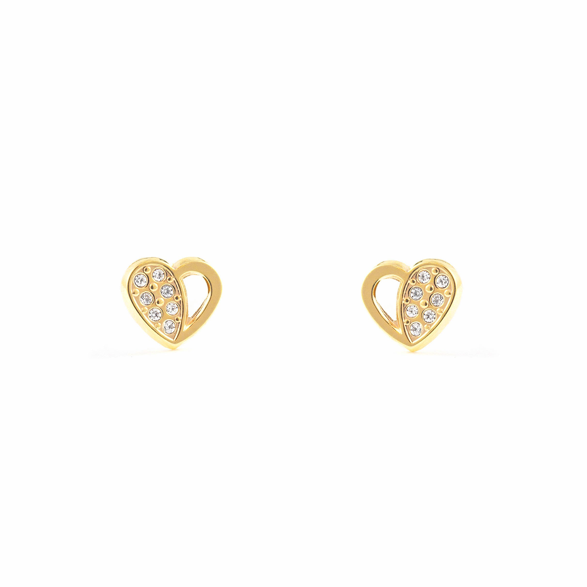 Girl's Earrings 9K Yellow Gold Heart Shiny Zirconia
