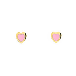 Girl's Earrings 9K Yellow Gold Shiny Pink Enamel Heart