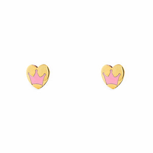 Pendientes Oro Niña corazon con Corona Esmaltada rosa (9kts)