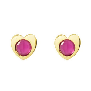 Pendientes oro amarillo niña Corazon con briolet rosa