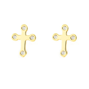 Girl's Earrings 9K Yellow Gold Cross Shiny Zircons