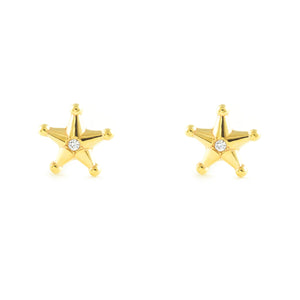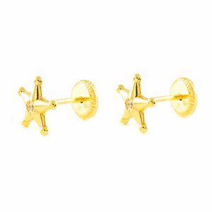 Girl's Earrings 9K Yellow Gold Shiny Zirconia Star