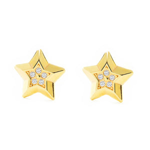 Girl's Earrings 9K Yellow Gold Shiny Zirconia Star