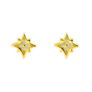 Girl's Earrings 9K Yellow Gold Shiny Zirconia Star