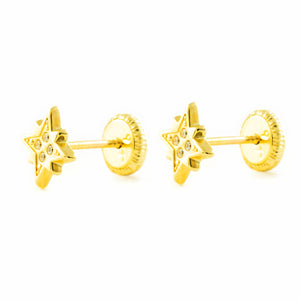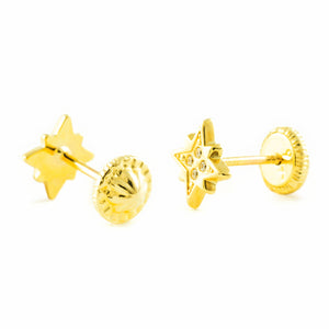 9K Yellow Gold Girl's Earrings with Shiny Zirconia Star