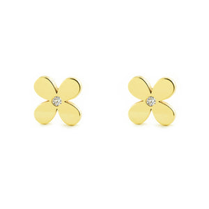 Girl's Earrings 9K Yellow Gold Shiny Zirconia Flower