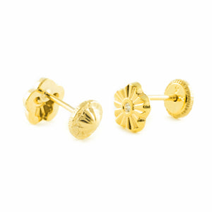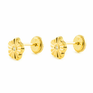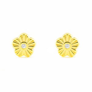 Girl's Earrings 9K Yellow Gold Shiny Zirconia Flower
