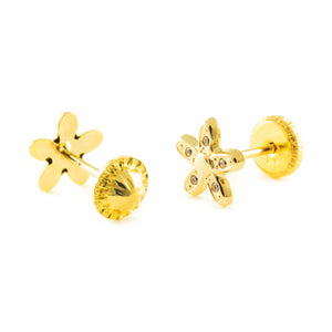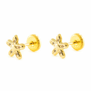 Girl's Earrings 9K Yellow Gold Shiny Zirconia Flower