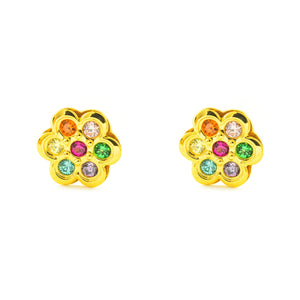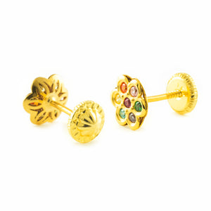 Girl's Earrings 9K Yellow Gold Flower Shiny Color Zircons
