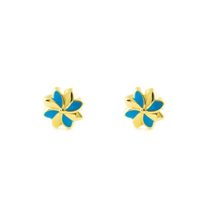 Girl's Earrings 9K Yellow Gold Shiny Blue Enamel Flower