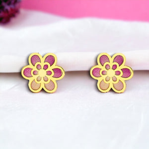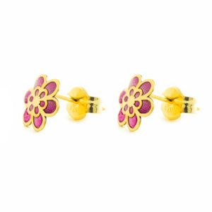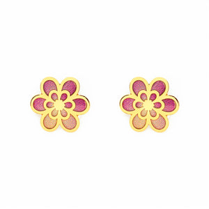 Girl's Earrings 9K Yellow Gold Shiny Multicolor Enamel Flower