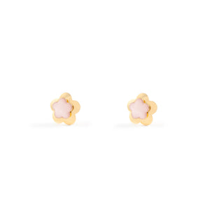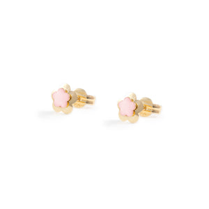 Girl's Earrings 9K Yellow Gold Flower Light Pink Enamel Shine