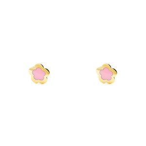 Girl's Earrings 9 Carat Gold (375/1000) Pink Enamel Flower