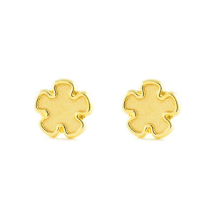 Girl's Earrings 9K Yellow Gold Matte and Shiny Flower