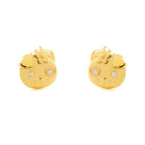 Girl's Earrings 9K Yellow Gold Matte and Shiny Zirconia Cat
