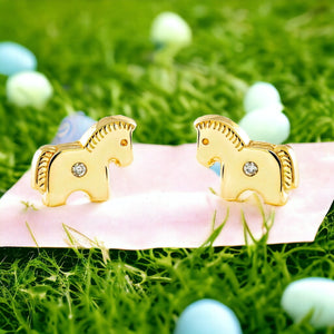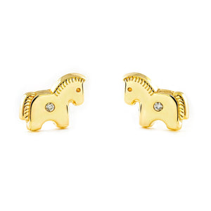 9K Yellow Gold Smooth Horse Cubic Zirconia Shine Girl's Earrings